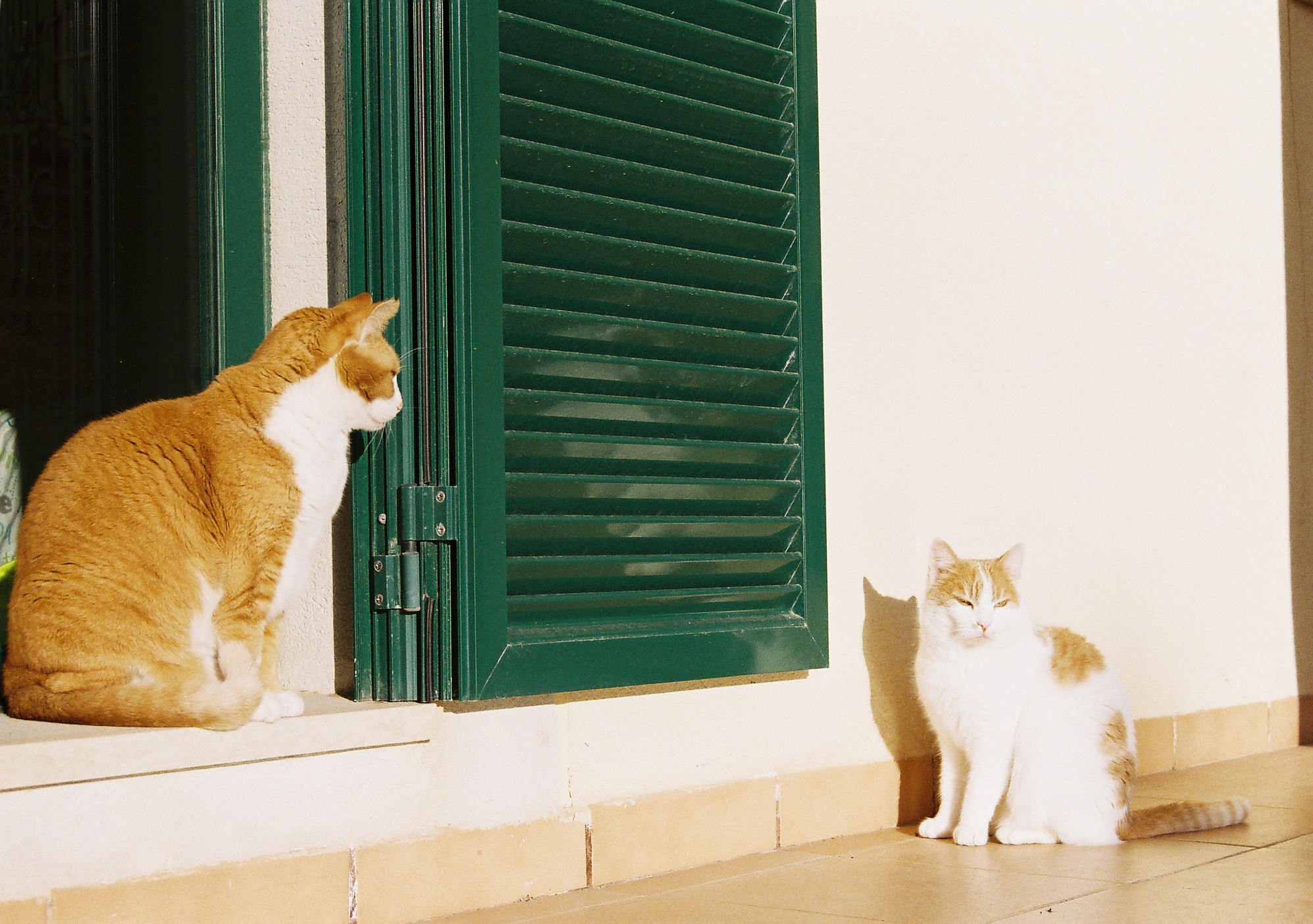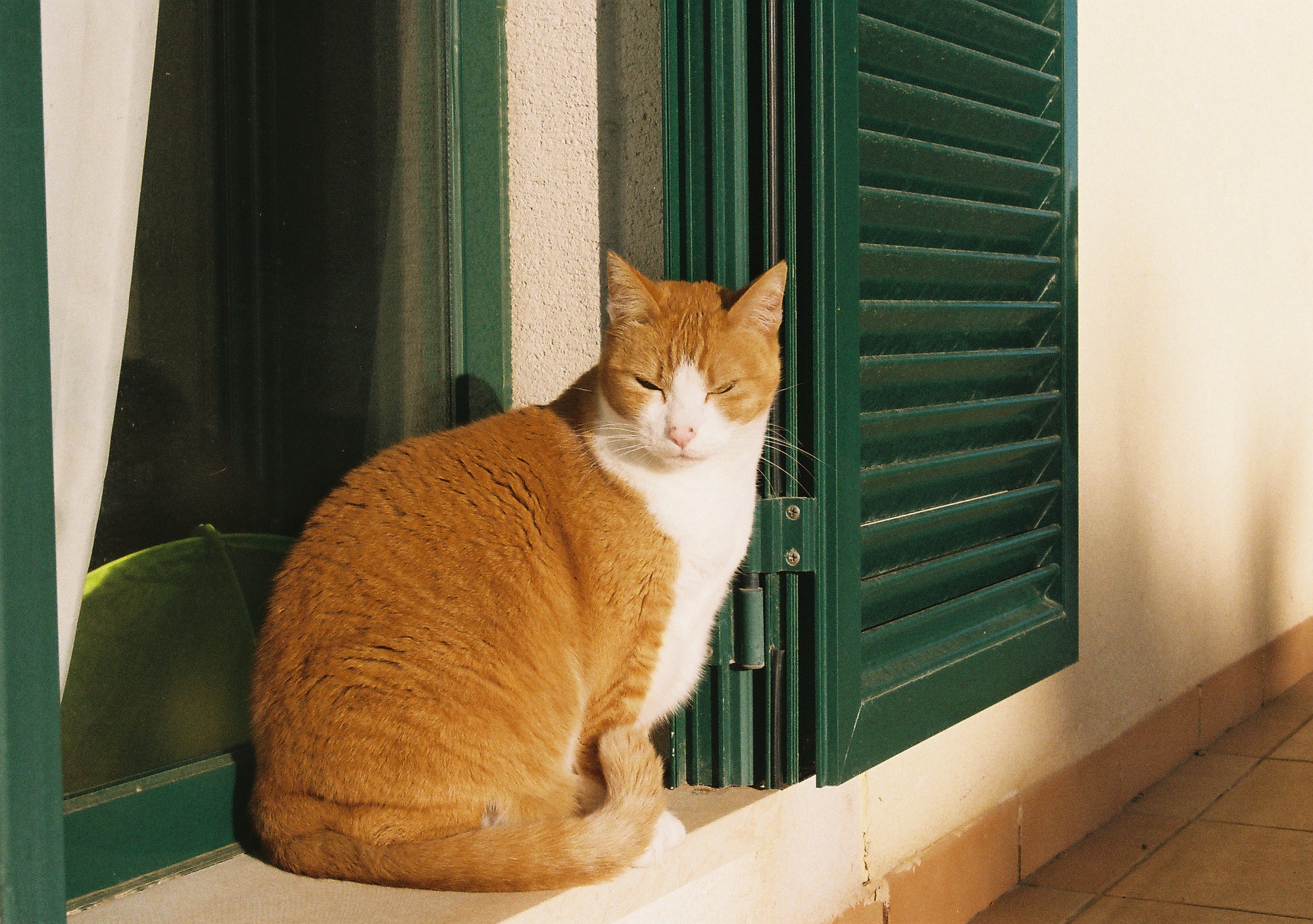 Zazwyczaj kupuję filmy 36-cio klatkowe, i zazwyczaj kiedy zostają mi jakieś wolne klatki zużywam je na fotografowanie naszych kotów. Tak też było i tym razem, więc dorzucam kilka kocich zdjęć z Majorki 😀