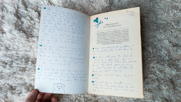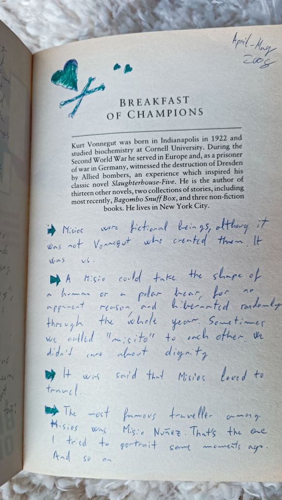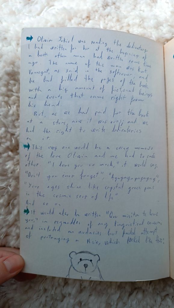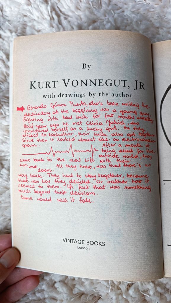 Kiedy po wiosennej wizycie w Budapeszcie (na którą nota bene nie wzięłam paszportu i dostałam w pociągu mandat za „nielegalne przekroczenie granicy”) rozstawaliśmy się znów na kilka miesięcy, weszliśmy do wielkiej księgarni. Było tam tyle tytułów, że spędziliśmy chyba ponad godzinę próbując wybrać kilka książek. Finalnie kupiliśmy trzy, dwie z nich Vonneguta.